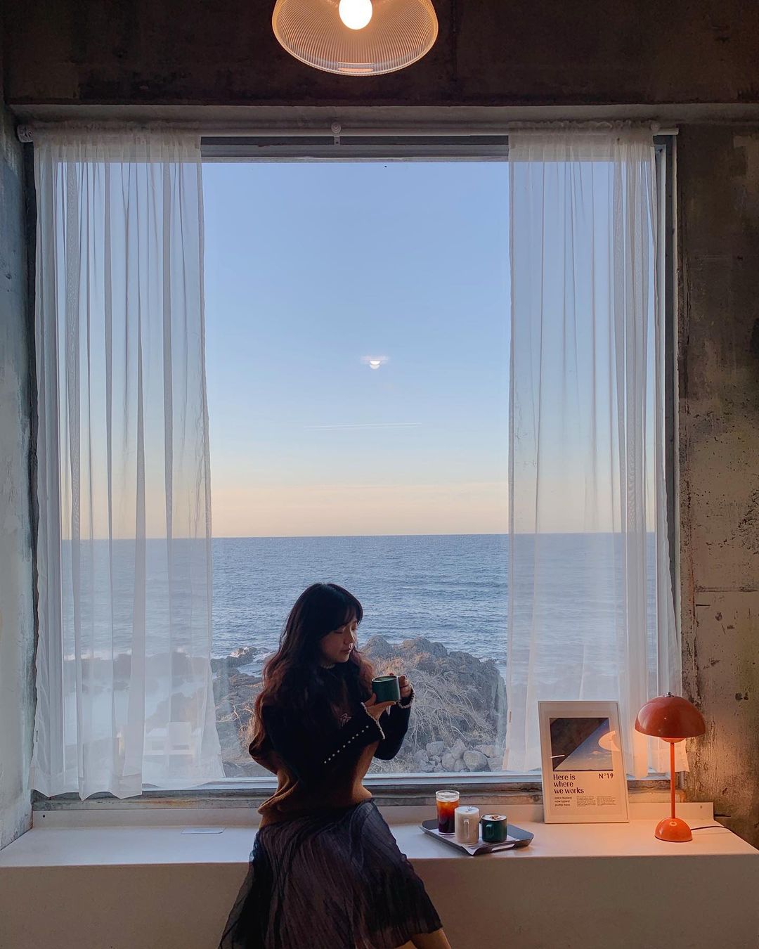 It is a cafe created by remodeling a farmhouse, and you can feel the vintage and hip atmosphere. It is an attractive cafe that gives a different feeling to each space with colorful lights inside, and an ocean view on one side. There are photo zones all over the place, so it is an essential space for users to take pictures.